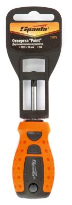 Отвертка Sparta Point 11771 из стали CrV, с 2-х компонентной рукояткой, подходит для монтажа/демонтажа крестового крепежа PH1. Она поможет мастерам провести мелкие бытовые работы в доме или автомастерской. Отвертка оснащена укороченным стержнем 38 мм для удобства работы в труднодоступных местах.