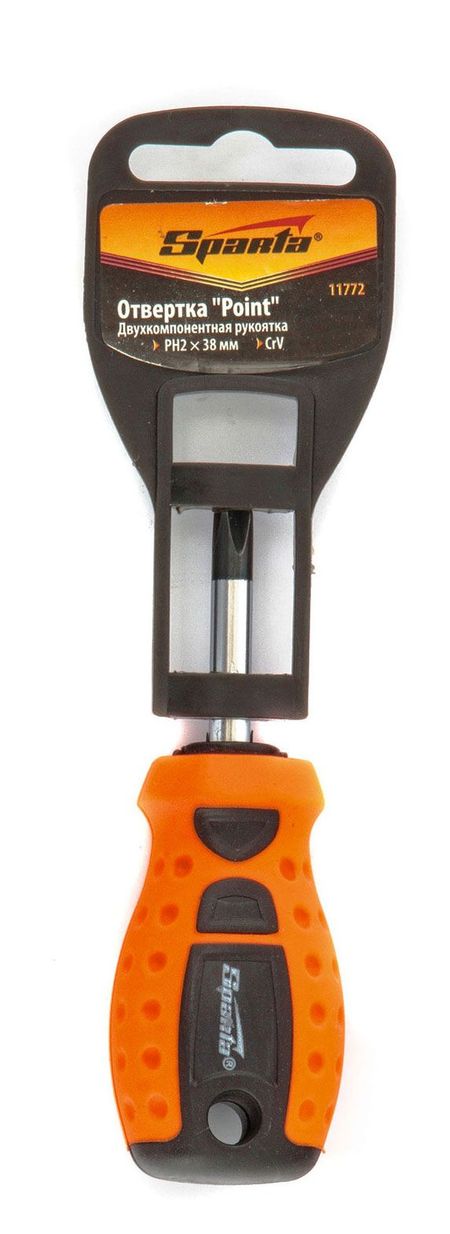 Отвертка Sparta Point 11772, из стали CrV, с 2-х компонентной рукояткой, подходит для монтажа/демонтажа крестового крепежа PH2. Она поможет мастерам провести мелкие бытовые работы в доме или автомастерской. Отвертка оснащена укороченным стержнем 38 мм для удобства работы в труднодоступных местах.