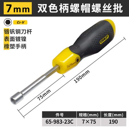 Отвертка Stanley с двухцветной ручкой и гайкой, 7×75 мм, многофункциональная отвертка, инструмент 65-983-23C