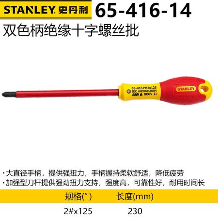 Отвертка Stanley с двухцветной ручкой и крестовой изоляцией, устойчивая к высокому напряжению, 65-416-14