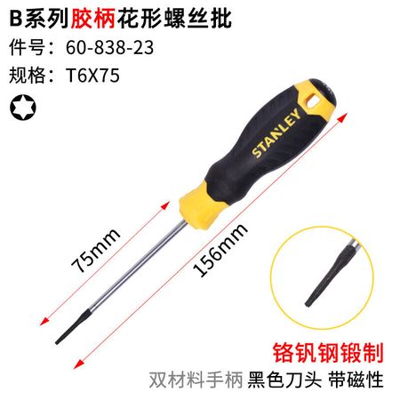 Отвертка в форме цветка с пластиковой ручкой серии Stanley B, бытовая многофункциональная отвертка T6x75mm 60-838-23