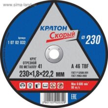 Круг отрезной по металлу Кратон Скорый A46TBF Ø230×1.