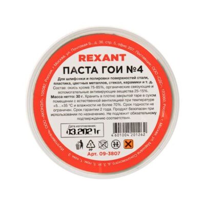 Главная » Строительство и ремонт Паяльники и аксессуары REXANT Паста ГОИ полировальная REXANT № 4 30 г 10 шт Просмотров 15 Широкий ассортимент по выгодным ценам. Регулярные акции. Программа лояльности REXANT