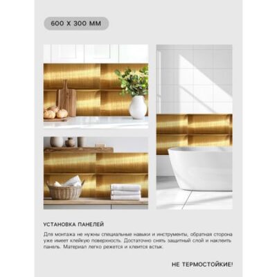 Панель ПВХ самоклеящаяся TAKE IT EASY, 600×300 мм, цвет золотистый. <b> Самоклеющиеся ПВХ — панели: решение для быстрого ремонта</b> Представляют собой простой и удобный материал для быстрой отделки помещений. Используют для обновления интерьера квартир, офисов и коммерческих объектов. Данный облицовочный материал позволяет быстро преобразить пространство, создать уют и освежить отделку стен. <b> Преимущества самоклеющихся панелей</b> <ul> <li> <strong> Простота установки:</strong> монтаж панелей не требует специальных инструментов и опыта, так как одна сторона покрыта клеевым слоем.</li> <li> <strong> Влагостойкость:</strong> панели устойчивы к воздействию влаги, их можно успешно применять в кухнях и ванных комнатах.</li> <li> <strong> Легкий уход:</strong> поверхность панелей легко очищается мягкой губкой с нейтральными моющими средствами.</li> <li> <strong> Экономия времени:</strong> благодаря простоте наклеивания монтаж занимает минимум времени, позволяя быстро завершить ремонтные работы.</li> </ul> Применение Рекомендации по установке и эксплуатации <ol> <li> Не применяйте панели в местах с прямым контактом воды, таких как пол или зона готовки на кухне.</li> <li> Перед укладкой очистите стену от пыли и грязи, обработав спиртосодержащим раствором для удаления жирных пятен.</li> <li> <strong> Используйте дополнительный клей для ПВХ</strong> для усиления фиксации, особенно на сложных поверхностях.</li> <li> Избегайте чрезмерного натяжения при наклейке, иначе возможны деформации.</li> </ol>