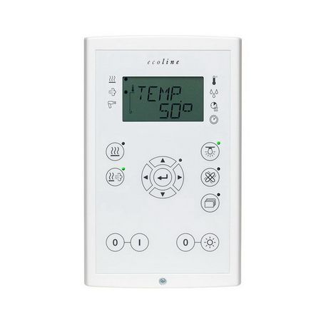 Пульт FASEL (Фасел) ecoline 2200 DESIGN (управление температурой/влажностью) может быть установлен на удалении до 100 м от релейного блока. Компактный размер позволяет легко установить пульт там, где мало места для установки. Панель управления рассчитана на работу с печами мощностью не более 9 киловатт и парогенератором мощностью 3 кВт.