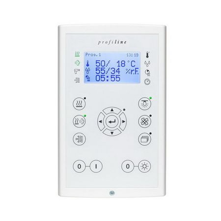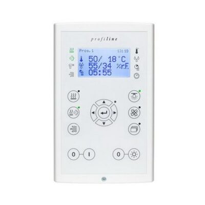 Удобная и простая в использовании панель FASEL (Фасел) profiline 4200 DESIGN (управление температурой/влажностью) позволит заранее запрограммировать режим обогрева в инфракрасной кабине и в одно касание изменить настройки оборудования. Информация обо всех настройках печи отображается на удобном ЖК-дисплее, с помощью которого вы можете установить таймер, температуру и режим вентиляции и влажности, а также управлять освещением в парной комнате.