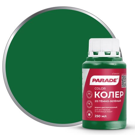 Главная » Строительство и ремонт паста колеровочная PARADE 0,25л 213 темно-зеленый, арт.0005790 Просмотров 14 /PARADE/ 0,25 л, универсальная, цвет: темно-зеленый 213 PARADE