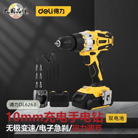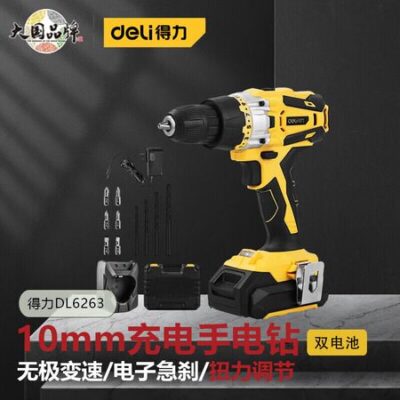 Перезаряжаемая ручная электрическая дрель Deli 10 мм Deli DL6263 1,5 с двумя аккумуляторами, бесщеточная, двойного назначения