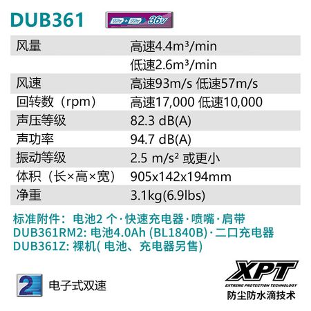 Перезаряжаемый фен Makita DUB361 с литиевой батареей сдувает листья и пыль, зарядное устройство с двумя портами, 36 В, 5,0 Ач.