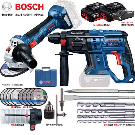 Перфоратор Bosch GBH180 + Угловая шлифовальная машина Bosch GWS180 + два аккумулятора 5.0Ah, зарядное устройство
