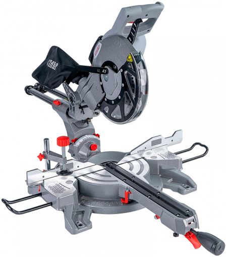 ОсобенностиСЕРИЯ ПРОФЕССИОНАЛ: Отличается наличием лазера и направляющих, благодаря которым осуществляется распил широких заготовок.ЛАЗЕРНАЯ НАПРАВЛЯЮЩАЯ: Позволяет производить распил заготовки без предварительной разметки.БОЛЬШОЙ АЛЮМИНИЕВЫЙ СТОЛ: Обеспечивает жесткость конструкции и гарантирует надежную фиксацию обрабатываемой заготовки.КОМФОРТНАЯ РАБОТА: Удобная эргономичная рукоятка снижает утомляемость и обеспечивает комфортную работу пользователя.ЧИСТОТА РАБОЧЕГО МЕСТА: Система пылеудаления с возможностью подключения пылесоса или мешка для сбора опилок сохранит рабочее место в чистоте.БЫСТРАЯ ЗАМЕНА ЩЕТОК: Имеется прямой доступ к щеточному узлу, что позволяет легко заменить угольные щётки, не разбирая корпус инструмента.Общие характеристикиПотребляемая мощность, Вт: 2200Напряжение сети / Частота, В/Гц: 22010/50Число оборотов на холостом ходу, об/мин: 5000Посадочный размер, мм: 30Длина сетевого кабеля, м: 3Лазерная направляющая: ЕстьДиаметр диска, мм: 255Максимальная глубина пропила (90),мм: 75Максимальная глубина пропила (45),мм: с наклоном влево — 45 / с наклоном вправо — 25Максимальный размер пропила, мм: 85х300Угол распила,: до 45 в обе стороныМаксимальная ширина пропила(90),мм: 300Максимальная ширина пропила(45),мм: 150Посадочный диаметр круга, мм: 30Масса, кг: 15Габаритные размеры упаковки, см: 74,5х54х43Масса с упаковкой, кг: 17,44КомплектацияПильный диск 1 шт.Зажим 1 шт.Приспособление для удлинения рабочего стола 2 шт.Мешок для сбора опилок 1 шт.Шестигранный ключ 1 шт.Угольные щетки (запасной комплект) 1 шт.