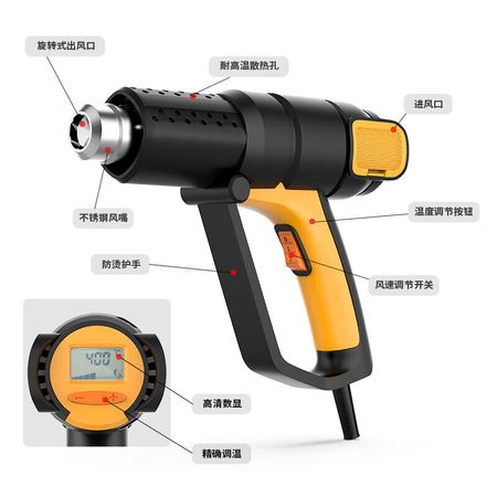 Пистолет горячего воздуха Deli с цифровым дисплеем, электрический фен с регулируемой температурой, электрический пистолет для выпечки, пленка, 2000 Вт, DL391200