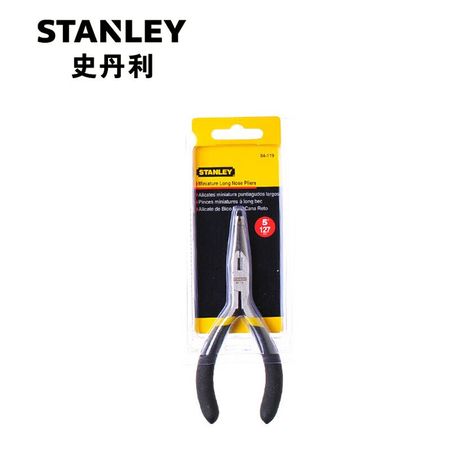 Плоскогубцы Stanley с игольчатыми носами, черная ручка, кованая углеродистая сталь, прочные и долговечные, 5-дюймовые мини-плоскогубцы с игольчатыми носами 84-119-23