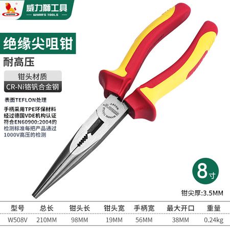 Плоскогубцы Wynns с острыми концами, электрики промышленного класса, плоскогубцы с острой изоляцией высокого напряжения, плоскогубцы с острой изоляцией высокого напряжения, 8 дюймов W508V
