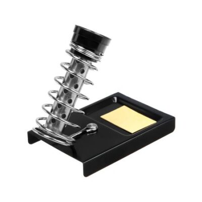 Подставка под паяльник ТУНДРА, чугун, прямоугольная ниша, губка. Подставка под паяльник ТУНДРА предназначена для безопасного нагревания прибора до нужной температуры, охлаждения и хранения. Изделие с прямоугольной чугунной нишей гарантирует прочность основания. Подставка с витым металлическим основанием, устойчива к высоким температурам благодаря чему паяльник быстро охлаждается, тем самым позволяет использовать изделие постоянно. Теплоизоляционная вставка надежно фиксирует паяльник внутри пружины и исключает вероятность ожогов. В подставке предусмотрен ложемент для хранения губки, используется для аккуратной очистки жала инструмента. Подставка небольшого размера для экономии рабочего пространства.