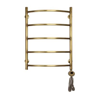 Электрический полотенцесушитель из латуни марки Л59. Цвет «Античная бронза». Труба цельнотянутая. Вертикальные стойки имеют диаметр 28 мм., горизонтальные перекладины выполнены из трубы диаметром 18мм. ТЭН имеет цифровой терморегулятор, температура регулируется от 35 до 70 градусов. Встроен таймер автоотключения на 2 и 4 часа. ТЭН оснащён термодатчиком, который защищает устройство от перегрева. Поставляется в сборном виде. Возможно скрытое подключение.