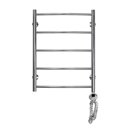Электрический полотенцесушитель из пищевой нержавеющей стали. Цвет «хром» – полированная до зеркального блеска нержавеющая сталь. Труба электросварная. Толщина 2 мм. Вертикальные стойки имеют диаметр 32мм., горизонтальные перекладины выполнены из трубы диаметром 18мм. ТЭН имеет цифровой терморегулятор, температура варьируется от 35 до 70 градусов. Встроен таймер автоотключения на 2 и 4 часа. ТЭН оснащён двумя термодатчиками, которые защищают устройство от перегрева. Поставляется в сборном виде.