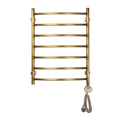 Электрический полотенцесушитель из латуни марки Л59. Цвет «Античная бронза». Труба цельнотянутая. Вертикальные стойки имеют диаметр 28 мм., горизонтальные перекладины выполнены из трубы диаметром 18мм. ТЭН имеет цифровой терморегулятор, температура регулируется от 35 до 70 градусов. Встроен таймер автоотключения на 2 и 4 часа. ТЭН оснащён термодатчиком, который защищает устройство от перегрева. Поставляется в сборном виде. Возможно скрытое подключение.