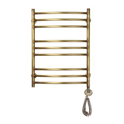 Электрический полотенцесушитель из латуни марки Л59. Цвет «Античная бронза». Труба цельнотянутая. Вертикальные стойки имеют диаметр 28 мм., горизонтальные перекладины выполнены из трубы диаметром 18мм. ТЭН имеет цифровой терморегулятор, температура регулируется от 35 до 70 градусов. Встроен таймер автоотключения на 2 и 4 часа. ТЭН оснащён термодатчиком, который защищает устройство от перегрева. Поставляется в сборном виде. Возможно скрытое подключение.
