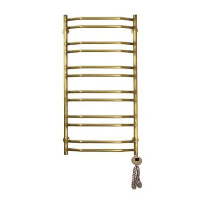 Электрический полотенцесушитель из латуни марки Л59. Цвет «Античная бронза». Труба цельнотянутая. Вертикальные стойки имеют диаметр 28 мм., горизонтальные перекладины выполнены из трубы диаметром 18мм. ТЭН имеет цифровой терморегулятор, температура регулируется от 35 до 70 градусов. Встроен таймер автоотключения на 2 и 4 часа. ТЭН оснащён термодатчиком, который защищает устройство от перегрева. Поставляется в сборном виде. Возможно скрытое подключение.
