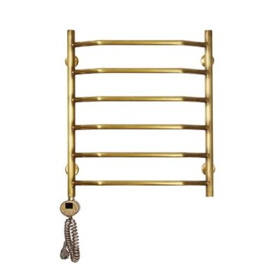 Электрический полотенцесушитель из латуни марки Л59. Цвет «Античная бронза». Труба цельнотянутая. Вертикальные стойки имеют диаметр 28 мм., горизонтальные перекладины выполнены из трубы диаметром 18мм. ТЭН имеет цифровой терморегулятор, температура регулируется от 35 до 70 градусов. Встроен таймер автоотключения на 2 и 4 часа. ТЭН оснащён термодатчиком, который защищает устройство от перегрева. Поставляется в сборном виде. Возможно скрытое подключение.