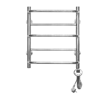 Электрический полотенцесушитель из пищевой нержавеющей стали. Цвет «хром» – полированная до зеркального блеска нержавеющая сталь. Труба электросварная. Толщина 2 мм. Вертикальные стойки имеют диаметр 32мм., горизонтальные перекладины выполнены из трубы диаметром 18мм. ТЭН имеет цифровой терморегулятор, температура регулируется от 35 до 70 градусов. Встроен таймер автоотключения на 2 и 4 часа. ТЭН оснащён двумя термодатчиками, которые защищают устройство от перегрева. Возможно скрытое подключение. Поставляется в сборном виде.