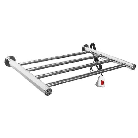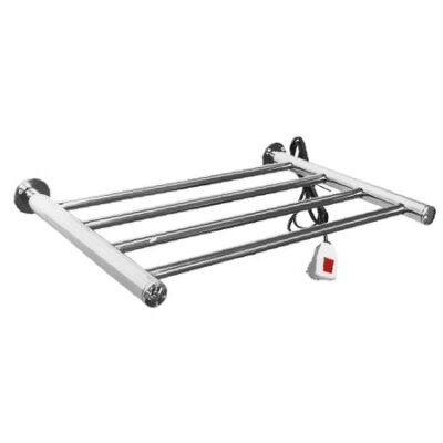 Полка электрическая из нержавеющей стали. Цвет «хром» – полированная до зеркального блеска нержавеющая сталь. Труба электросварная. Толщина 1,5 мм. Стойки имеют диаметр 32мм., горизонтальные перекладины выполнены из трубы диаметром 18мм. Есть кнопка включения/выключения. Встроенный термодатчик снижает уровень энергопотребления и увеличивает безопасность эксплуатации и срок службы. Возможно скрытое подключение.