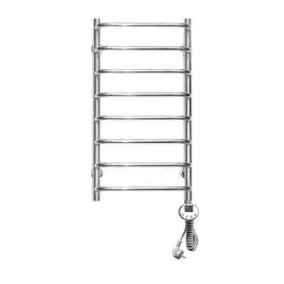 Электрический полотенцесушитель из пищевой нержавеющей стали. Цвет «хром» – полированная до зеркального блеска нержавеющая сталь. Труба электросварная. Толщина 2 мм. Вертикальные стойки имеют диаметр 32мм., горизонтальные перекладины выполнены из трубы диаметром 18мм. ТЭН имеет цифровой терморегулятор, температура регулируется от 35 до 70 градусов. Встроен таймер автоотключения на 2 и 4 часа. ТЭН оснащён двумя термодатчиками, которые защищают устройство от перегрева. Возможно скрытое подключение. Поставляется в сборном виде.