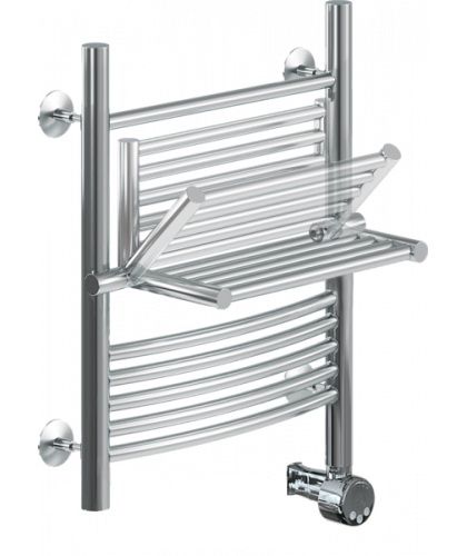 Данная модель представляет собой конструкцию из двух стояков, выполненных из нержавеющей стали европейского производства, а также перемычек, расположенных вдоль всей длины стояков. Благодаря высокой теплоотдаче, полотенцесушитель демонстрирует отличное качество работы. Модель полотенцесушителя, оснащенная складной полочкой.