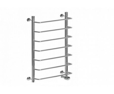 Представленная модель выполнена в виде лесенки с двумя вертикальными стойками и горизонтальными перемычками трапециевидной формы, расположенными между ними. Благодаря своей простой конструкции и стильному виду данный полотенцесушитель станет настоящим украшением Вашей ванной.