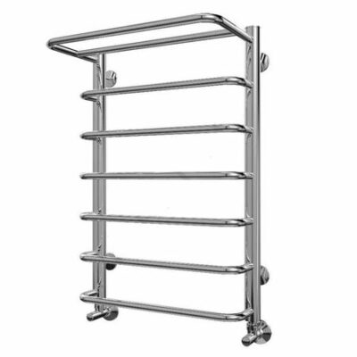 Terminus (Терминус) ПолкаП7 450×696 это современный полотенцесушитель с полкой для ванной комнаты, в качестве теплоносителя в котором используется горячая вода. Температура воды не должна быть более чем 110, градусов давление не превышать 9 атмосфер. Полотенцесушитель для дома и квартиры отличается изящным дизайном, вся поверхность его отполирована до зеркального блеска, который, при должном уходе, не потеряет внешний вид на протяжении всего срока эксплуатации.