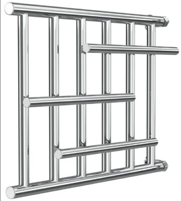 Данная модель представляет собой конструкцию из хромированной, нержавеющей стали с правильными, прямыми углами П-образного стояка и зигзагообразного змеевика, несущего теплоноситель. Благодаря высококачественной стали и ее высокой теплопроводности в Вашей ванной всегда будет не только сухо, но и тепло.