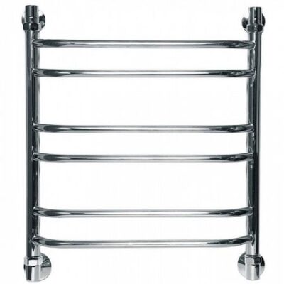 Представленная модель выполнена в виде лесенки с двумя вертикальными стойками и горизонтальными перемычками трапециевидной формы, расположенными между ними. Благодаря своей простой конструкции и стильному виду данный полотенцесушитель станет настоящим украшением Вашей ванной.