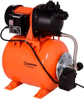 Станция Вихрь АСВ-800/20 оснащена насосом и гидроаккумулятором для обеспечения правильных условий работы водоснабжения. Насос основан на однофазном асинхронном моторе, а само устройство позволяет обеспечить несколько точек водозабора открытого типа с максимальной глубиной 5 м. Наличие гидроаккумулятор повышает срок службы.