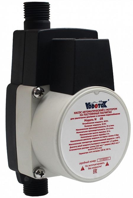 Насос повышения давления Vodotok (Водоток) W15GR-10 на постоянных магнитах предназначен для повышения давления и увеличения объема подачи воды в нестабильных системах водоснабжения и обеспечения устойчивой работы газовых котлов, газовых колонок. Модель обладает высокой производительностью и экономичным энергопотреблением. Мокрый ротор обеспечивает низкий уровень шума и стабильную работу при высоких нагрузках.