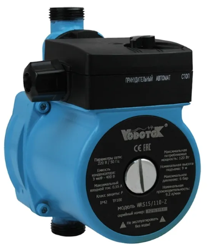 Поверхностный насос Vodotok (Водоток) WRS15/110-Z предназначен для повышения давления и увеличения подачи воды в нестабильных системах водоснабжения, а также для обеспечения стабильной работы газовых котлов и колонок. Насос оснащен встроенной автоматикой и может работать в ручном и автоматическом режимах. Мокрый ротор обеспечивает бесшумную работу и долгий срок службы оборудования.