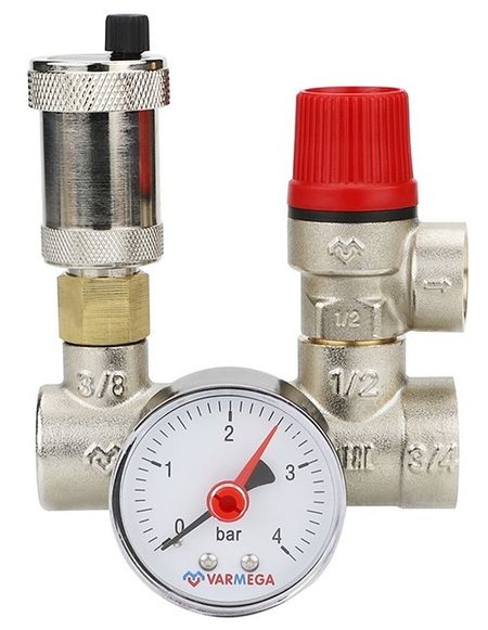 Группы безопасности от итальянского бренда VARMEGA выполнены из материалов наивысшего качества и полностью адаптированы под использование в РФ и странах СНГ. С помощью данных приборов воздух и газы автоматически отводятся из системы отопления, а также осуществляется защита от избыточного давления.