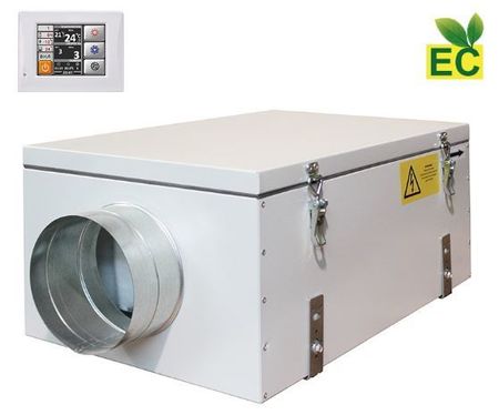 Вентиляционная установка ФЬОРДИ ВПУ 800 ЕС/6-380/2-GTC оборудована надежным электродвигателем с термозащитой, электрическим нагревателем, фильтром очистки воздуха класса G4. Управлять прибором помогает специальный настенный пульт, на котором регулируются скорости вентиляторов, отображаются состояния различных датчиков, уровень загрязненности фильтра и т.д. Может быть укомплектована электронной системой управления (опция).