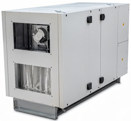 Вентиляционная установка Dimmax (Диммакс) Skyron RG (R/L) 70 E-44 относится к категории приточно-вытяжных и подходит для промышленного и коммерческого использования. Модель устанавливается на пол, для очистки воздуха в нее встраиваются фильтры класса G4. Блок автоматики открывает широкий набор функциональных возможностей, установку можно подключить к системе умного дома.