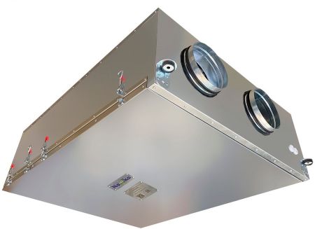 Подвесное исполнение — патрубки расположены по бокам, с подключением воздуховодов.