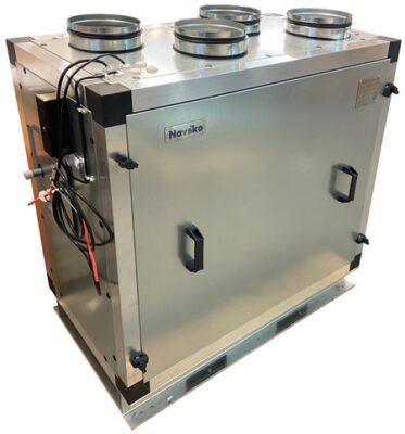 Naveka (Навека) Node3-600(50m)/RR,VEC(D225),E1.9 Vertical это вертикальная приточно-вытяжная вентиляционная установка, с помощью которой можно подавать в помещения чистый и при необходимости подогретый воздух. Также опционально для кондиционирования можно установить фреоновый охладитель.