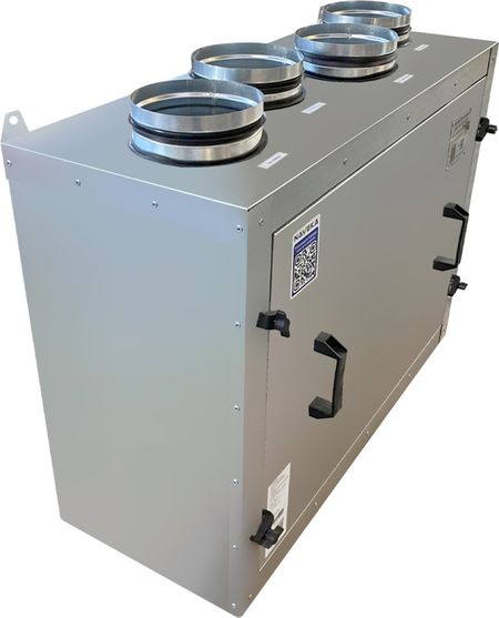 Агрегат приточно-вытяжного вида Naveka (Навека) Node9-250(50m)/RP-M,VAC(D250) Vertical с пультом-термостатом изготовлен в корпусе из оцинкованной стали с заполнением минеральной ватой. Данный материал повышает тепло- и звукоизоляционные свойства оборудования. Настраивается при помощи комплектного пульта с датчиком температуры.