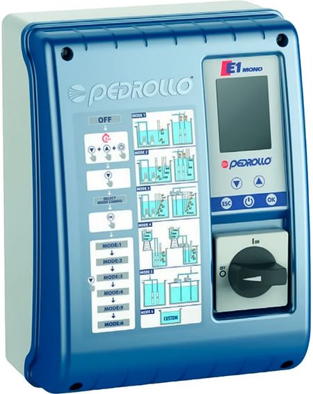 Пульт управления Pedrollo (Педролло) E1 — MONO до 18А представлен многофункциональным устройством для регулировки трехфазного насоса. Для блока управления предусмотрена возможность выбора между 6 предустановленными программами. Применение данного аксессуара значительно облегчает эксплуатацию оборудования.