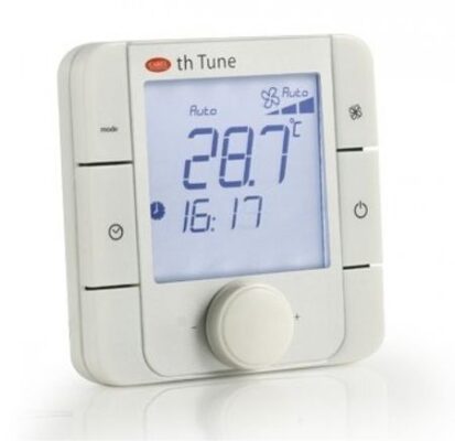 Пульт управления накладной th-Tune ATC4001AW0 Energolux (Энерголюкс) позволяет пользователю контролировать температуру и влажность в окружающей среде и оснащен встроенным датчиком температуры, напряжение питания контрольной панели составляет 24В. Температуру и влажность воздуха можно легко и удобно регулировать с помощью ручки, расположенной на передней панели терминала. Компактные размеры и элегантный внешний вид позволяют органично вписать этот графический терминал в любую комнату.