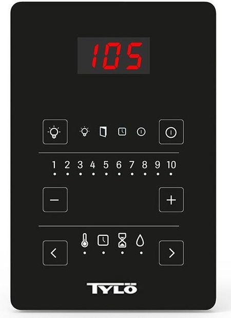 Сенсорный пульт управления Tylo (Туло) Pure изготовлен из стекла, устойчивого к высоким температурам. Степень защиту устройства IP24. Аксессуар, выполненный в строгом дизайне в черном цвете, хорошо впишется в любой интерьер сауны или бани. Универсальный пульт позволит настроить температуру и влажность в парильне под свои требования.