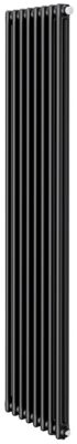Royal Thermo (Роял Термо) Insignia VC2180 — 08 секц. RAL9005m, нижнее 1/2 это двухколончатый радиатор отопления, изготовленный из стали. Модель выкрашена в черный цвет и прекрасно смотрится в любых интерьерах. Трубы вытянуты вертикально, их высота составляет 180 см. Крепежи для монтажа прибора входят в комплект.