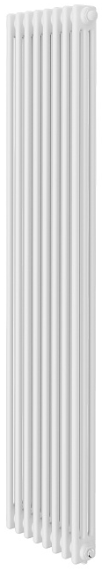 Royal Thermo (Роял Термо) Insignia VC3180 — 08 секц. RAL9016, нижнее 1/2 это стальной отопительный радиатор, состоящий из 8 вертикальных секций. Каждая секция включает в себя три ряда труб с прямоугольным сечением и изящной белой расцветкой. В местах, где трубы соединяются с коллекторами, нет сварных швов.