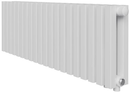 Дизайн-радиатор Royal Thermo (Роял Термо) Shift Q30 VC2030 — 20 секц. RAL9016, нижнее 1/2 выполнен из стали и окрашен в белый цвет с глянцевым покрытием. Модель защищена от механических повреждений, коррозии, резких перепадов температур и ультрафиолетового излучения. Термостатический вентиль с защитным колпачком есть в комплекте.
