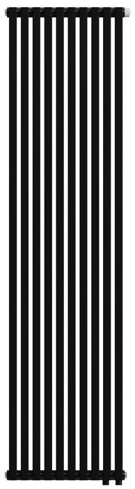 Royal Thermo (Роял Термо) Shift Q30 VC2180 — 10 секц. RAL9005m, нижнее 1/2 это дизайн-радиатор высотой 180 см. Он окрашен в черный матовый цвет и подключается к отопительной системе снизу. В комплекте потребитель найдет необходимые для монтажа крепления, воздухоотводчик и термостатический вентиль с защитным колпачком.