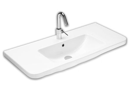 Раковина подвесная HATRIA ERIKA PRO Q YXGN01, с переливом, 1 отверстие для смесителя (еще 2 намеченных отверстия), размер 100х45 см, цвет белый. Комплект креплений приобретается отдельно. Может комплектоваться подвесным полупьедесталом. Возможен монтаж на тумбу. Сифон и донный клапан приобретаются отдельно.